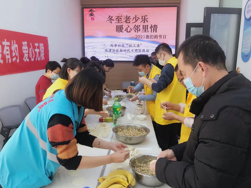 為了推動“我為群眾辦實事”實踐活動取得實效,讓失獨家庭的群眾過上一個溫暖愉快的冬至節(jié),12月21日,甘肅工程咨詢集團志愿者服務隊聯(lián)合敦煌路街道西津社區(qū),組織轄區(qū)失獨家庭11名居民群眾舉辦了“冬至老少樂 暖心鄰里情”活動,為他們奉上了一道溫暖祥和的餃子“盛宴”。