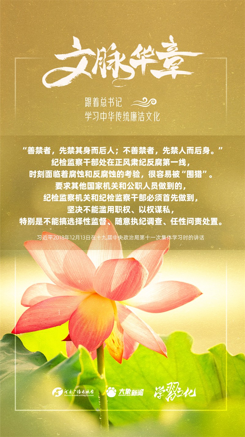 中華優(yōu)秀傳統(tǒng)文化蘊(yùn)含著豐富的廉潔文化,習(xí)近平總書(shū)記曾指出:沒(méi)有中華優(yōu)秀傳統(tǒng)文化、革命文化、社會(huì)主義先進(jìn)文化的底蘊(yùn)和滋養(yǎng),信仰信念就難以深沉而執(zhí)著??倳?shū)記常常引經(jīng)據(jù)典,教育引導(dǎo)廣大黨員干部正心修身,涵養(yǎng)文化,守住為政之本。讓我們一起跟著總書(shū)記學(xué)習(xí)中華傳統(tǒng)廉潔文化。今天推出第三期。