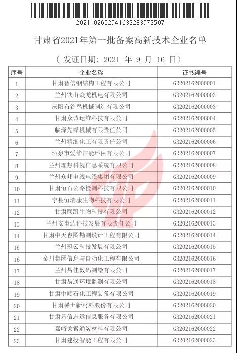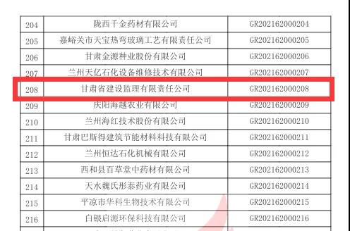 甘肅省水利水電勘測設(shè)計(jì)研究院有限責(zé)任公司中標(biāo)甘肅省引洮供水二期配套城鄉(xiāng)供水信息化專項(xiàng)工程方案、招標(biāo)設(shè)計(jì)及施工圖設(shè)計(jì)項(xiàng)目;平?jīng)鍪谐缧趴h棗林溝水庫工程;萬州區(qū)魚背山水庫大壩安全評估報(bào)告編制;協(xié)合拉引水樞紐、秋格爾引水樞紐、英爾引水樞紐安全評價(jià)項(xiàng)目。中標(biāo)蘭州中川機(jī)場三期擴(kuò)建供油工程項(xiàng)目機(jī)坪航站區(qū)工程勘察。甘肅省建設(shè)監(jiān)理有限責(zé)任公司中標(biāo)省政府為民實(shí)事保障性租賃住房項(xiàng)目監(jiān)理。甘肅省建設(shè)監(jiān)理有限責(zé)任公司根據(jù)《高新技術(shù)企業(yè)認(rèn)定管理辦法》和《高新技術(shù)企業(yè)認(rèn)定管理工作指引》有關(guān)規(guī)定,全國高新技術(shù)企業(yè)認(rèn)定管理工作領(lǐng)導(dǎo)小組辦公室于10月26日正式公布了甘肅省2021年第一批備案的294家高新技術(shù)企業(yè)名單,建設(shè)監(jiān)理公司榜上有名,被評定為“高新技術(shù)企業(yè)”。