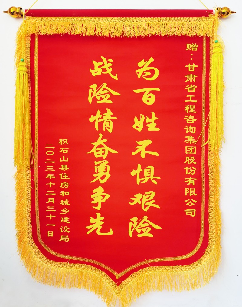1月3日上午,積石山縣住房和城鄉(xiāng)建設(shè)局向甘肅工程咨詢集團(tuán)贈(zèng)送“為百姓不懼艱險(xiǎn),戰(zhàn)險(xiǎn)情奮勇爭先”錦旗,并發(fā)來《感謝信》,對在抗震救災(zāi)關(guān)鍵時(shí)刻奔赴災(zāi)區(qū)開展房屋應(yīng)急評估工作的專家表達(dá)感謝和敬意。