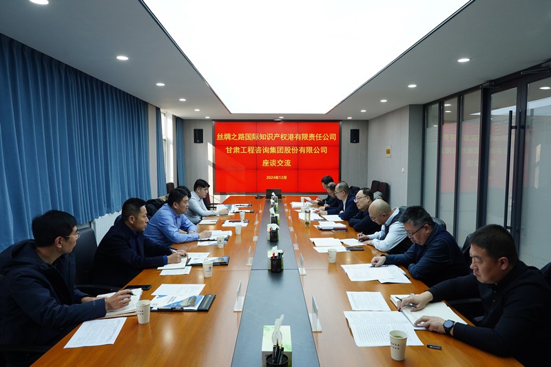 12月4日,甘肅工程咨詢集團(tuán)黨委副書記、總經(jīng)理張佩峰與來訪的絲綢之路國際知識產(chǎn)權(quán)港有限責(zé)任公司黨委書記、董事長賀泉茗一行座談,圍繞知識產(chǎn)權(quán)全鏈條業(yè)務(wù)、科技成果轉(zhuǎn)化、數(shù)字經(jīng)濟等領(lǐng)域進(jìn)行深入交流。