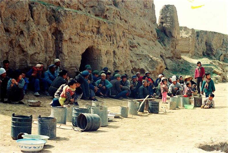 上世紀70年代,甘肅中部的定西等十多個縣大旱,數(shù)百萬群眾等待政府送水(來源:甘肅省水利廳網(wǎng)站)