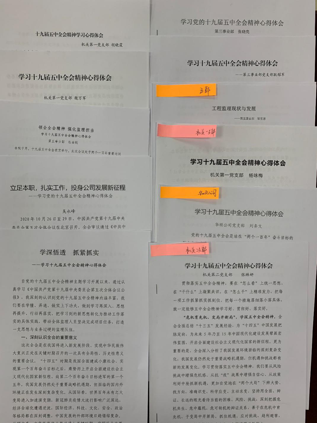 為進(jìn)一步深入學(xué)習(xí)貫徹落實(shí)黨的十九屆五中全會(huì)精神,擴(kuò)大學(xué)習(xí)覆蓋面,擴(kuò)展學(xué)習(xí)的深度,引導(dǎo)全體黨員干部統(tǒng)一思想、凝聚共識(shí),不斷提振精神狀態(tài)、改進(jìn)工作作風(fēng)、提升工作效能,公司黨委專門發(fā)文對(duì)學(xué)習(xí)貫徹五中全會(huì)精神進(jìn)行了專題安排,要求全體黨員在黨委理論學(xué)習(xí)中心組學(xué)、支部學(xué)、部門學(xué)、個(gè)人自學(xué)的基礎(chǔ)上,自覺撰寫學(xué)習(xí)心得體會(huì),共收集心得體會(huì)84篇。從收到的心得體會(huì)來(lái)看,全體黨員在學(xué)習(xí)貫徹黨的十九大五中全會(huì)精神過程中動(dòng)腦、入心,做到了做到學(xué)有所思、學(xué)有所慮、學(xué)有所得、學(xué)有所做。