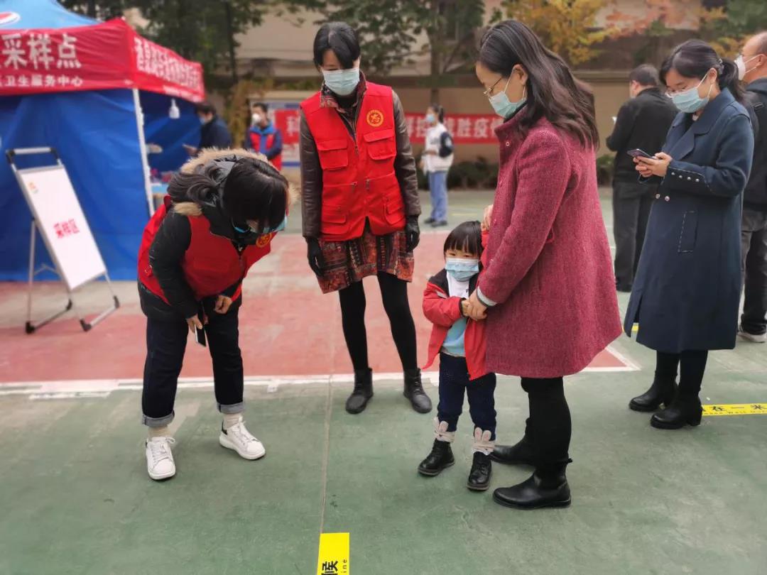 號令一出,不到半個(gè)小時(shí)時(shí)間,300多人的志愿隊(duì)伍已組建就緒。當(dāng)天下午,第一批志愿者隊(duì)伍,統(tǒng)一身穿紅馬甲,佩戴口罩,迅速奔赴南關(guān)夜市、伊真大廈、五泉街道、外國語中學(xué)等多個(gè)檢測點(diǎn)開展志愿服務(wù)。而女志愿服務(wù)者則更成為了深秋季節(jié)疫情防控一線最靚麗的一道風(fēng)景?!澳?,請?zhí)嵩绱蜷_微信健康出行碼”“請大家不要扎堆聚集,按照1米線要求,有序排隊(duì)”“請黃碼人員、老人、孕婦和小孩走綠色通道”……一聲聲溫馨提示,一次次貼心攙扶,都是她們最溫情的守護(hù)。