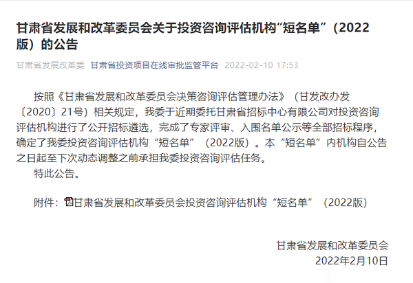 近日,省發(fā)改委公布2022年進(jìn)入省發(fā)改委投資咨詢?cè)u(píng)估機(jī)構(gòu)企業(yè)名單,甘肅省水利水電勘測(cè)設(shè)計(jì)研究院有限責(zé)任公司成功入圍三個(gè)行業(yè)板塊。