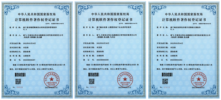 近日,由甘肅省水利水電勘測設(shè)計研究院有限公司自主研發(fā)的《基于響應(yīng)矩陣的井群開采降深計算軟件》《基于融合權(quán)重-云模型的地下水水質(zhì)評價軟件》《基于麥肯錫邏輯樹的水利科技資料管理軟件》等3項(xiàng)計算機(jī)軟件獲得著作權(quán)登記證書。