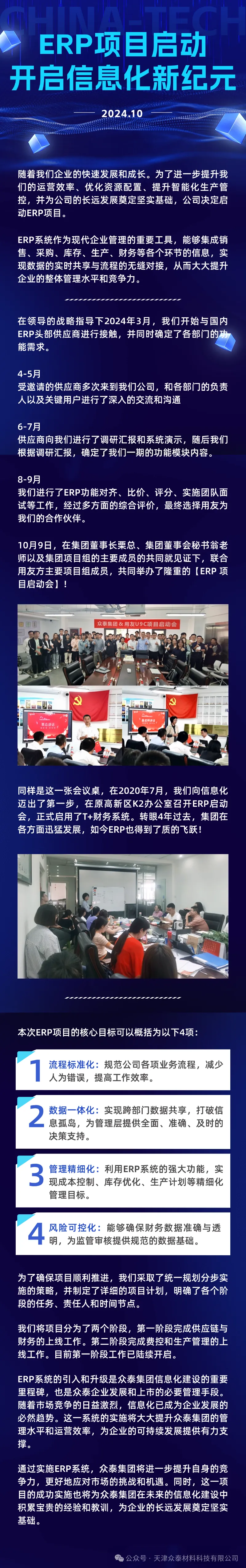 隨著(zhù)企業(yè)的快速發(fā)展,為進(jìn)一步提升運營(yíng)效率、優(yōu)化資源配置、提升智能化生產(chǎn)管控,為公司長(cháng)遠發(fā)展奠定堅實(shí)基礎,公司決定啟動(dòng)ERP項目。