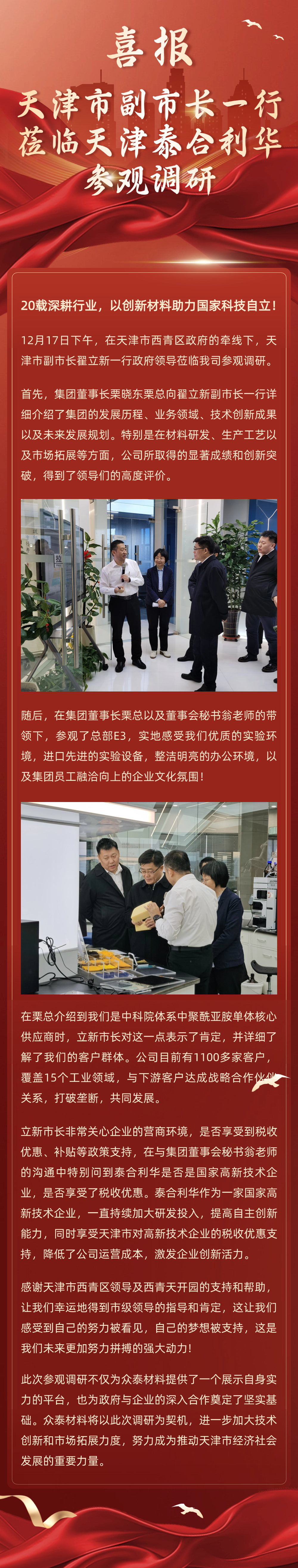 感謝天津市西青區領(lǐng)導及西青天開(kāi)園的支持和幫助。眾泰材料將以此調研為契機,進(jìn)一步加大技術(shù)創(chuàng )新和市場(chǎng)拓展力度,努力